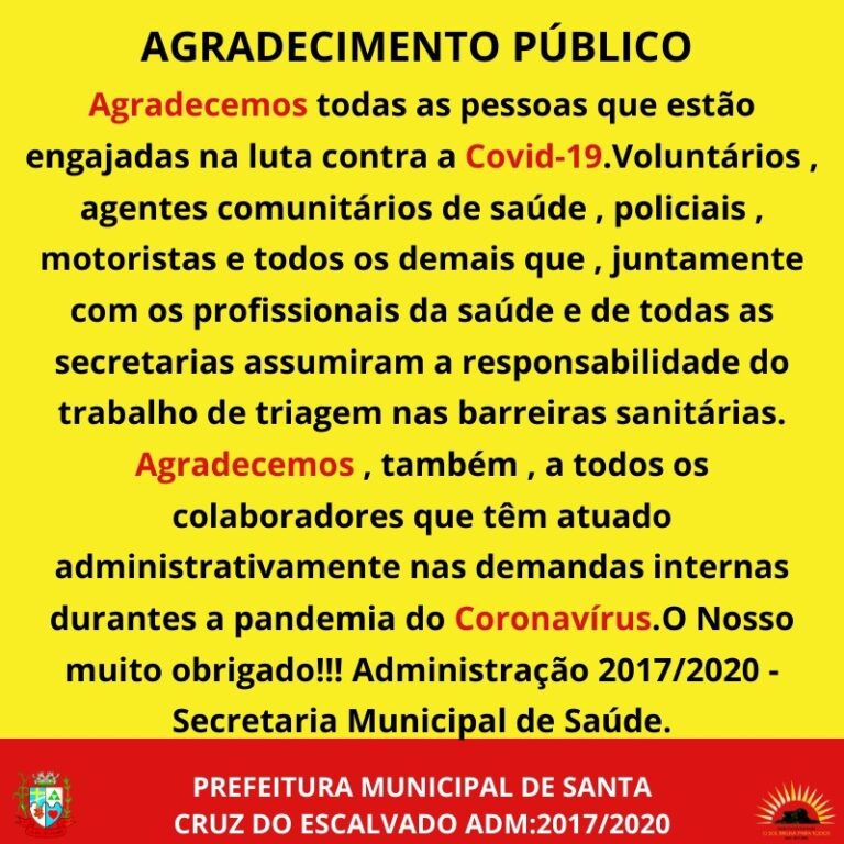 A Secretária de Educação de Santa Cruz do Escalvado informa que o ano letivo começa dia 04/02/2020 para os alunos matriculados na rede municipal de