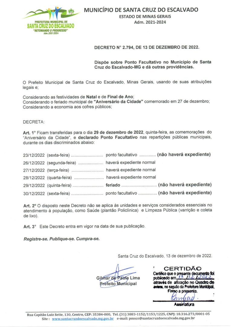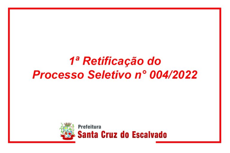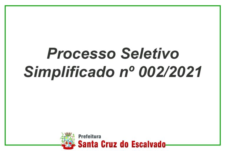 A Prefeitura Municipal de Santa Cruz do Escalvado – MG, por meio de seu Prefeito Gilmar de Paula Lima, em consonância com as legislações pertinentes