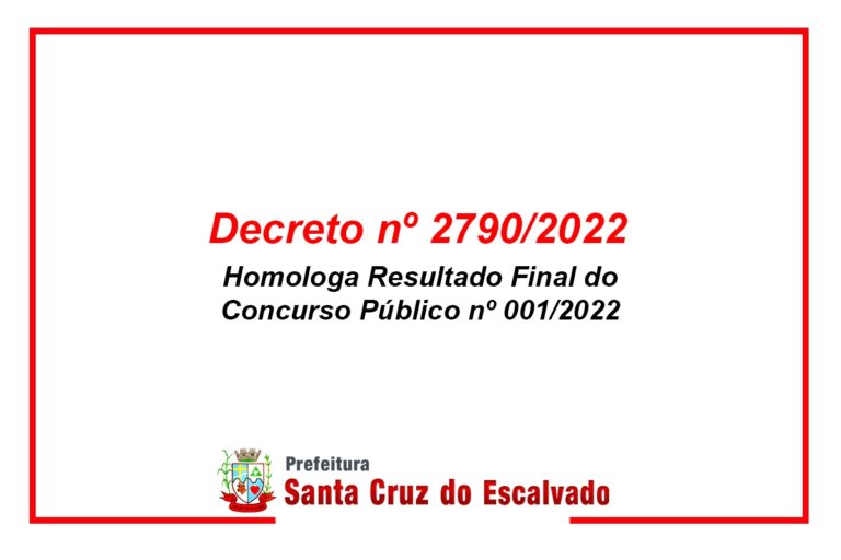 Homologa Resultado Final do Concurso Público nº 001/2022, realizado pelo Município de Santa Cruz do Escalvado e dá outras providências.