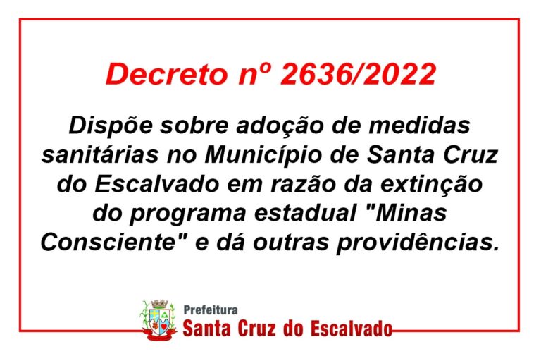 Dispõe sobre adoção de medidas sanitárias no Município de Santa Cruz do Escalvado em razão da extinção do programa estadual “Minas Consciente” e dá outras