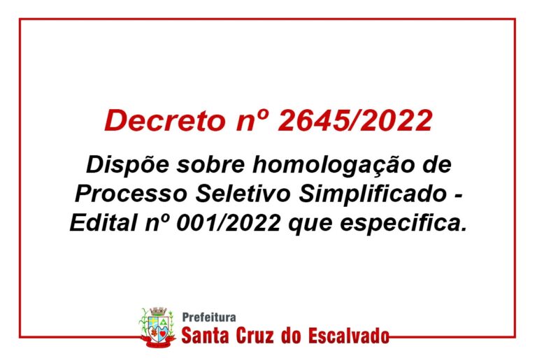 Dispõe sobre homologação de Processo Seletivo Simplificado – Edital nº 001/2022 que especifica.