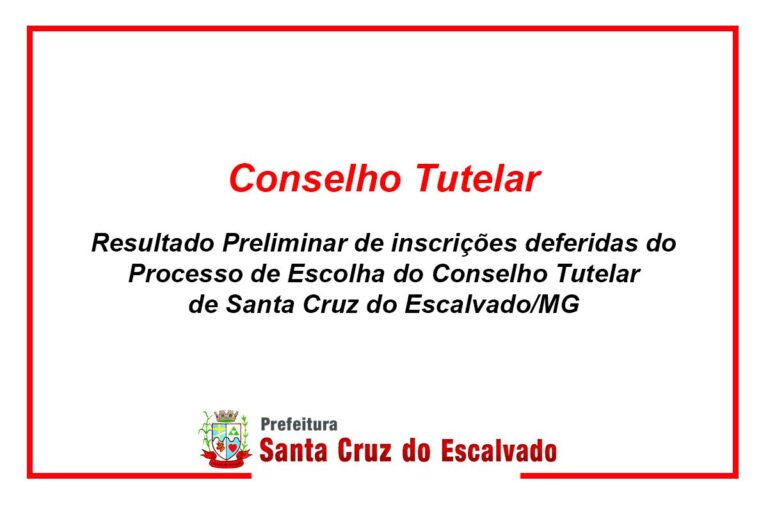 O Município de Santa Cruz do Escalvado/MG, torna público que estarão abertas, do dia 11 ate 13 de abril de 2022 as inscrições para o