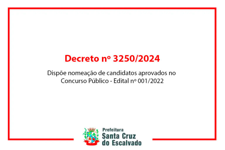 Dispõe nomeação de candidatos aprovados no Concurso Público – Edital nº 001/2022 DECRETO 3250/2024
