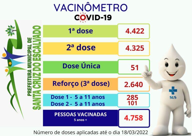 VACINÔMETRO: Visando dar transparência e publicidade à execução da vacinação contra a COVID-19, a Secretaria Municipal de Saúde de Santa Cruz do Escalvado segue com