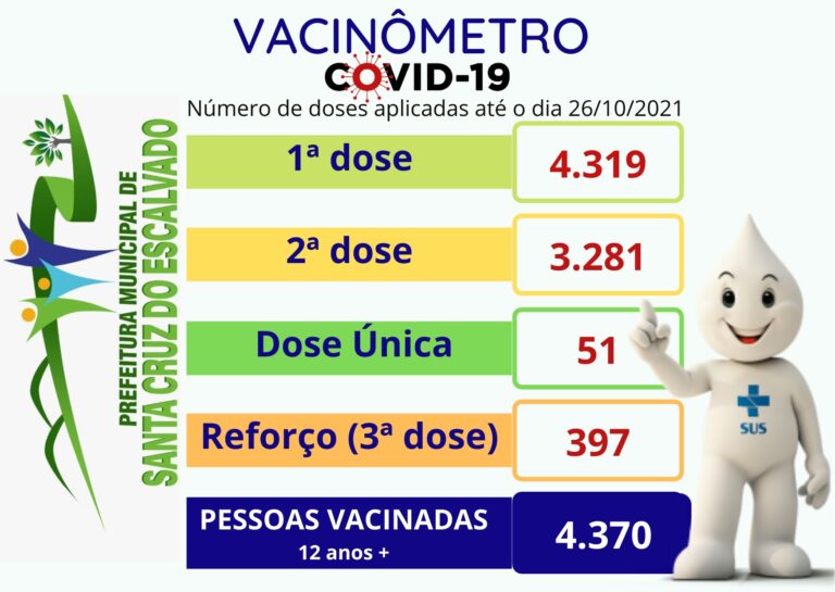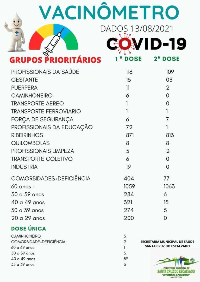 VACINÔMETRO: Visando dar transparência e publicidade à execução da vacinação contra a COVID-19, a Secretaria Municipal de Saúde de Santa Cruz do Escalvado segue com