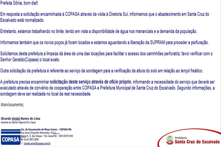 A Prefeitura de Santa Cruz do Escalvado, por meio da secretaria de obras e serviços urbanos , iniciou às obras de saneamento na rua N