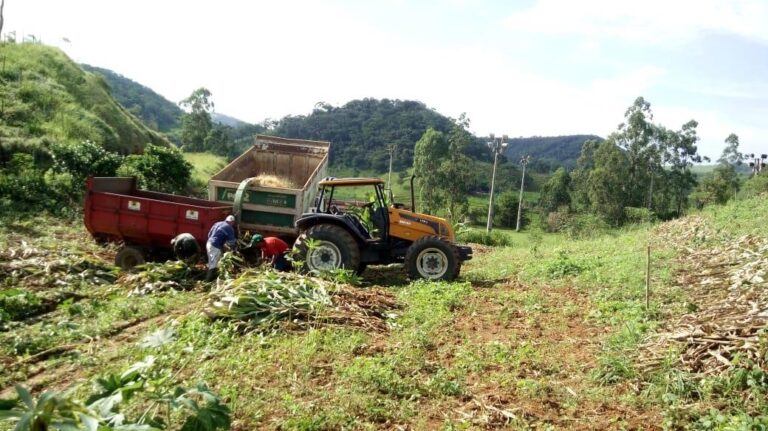 A equipe da Secretaria de Agricultura vem realizando o trabalho de silagem em propriedades rurais. Atualmente o atendido é o Sr. João Bosco da comunidade