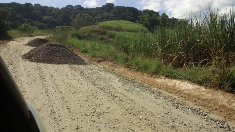 Na manhã do dia 13/03 os caminhões bi-trens e básculos começaram entregar a matéria prima (bica) a ser usado na base para finalizar o asfaltamento da