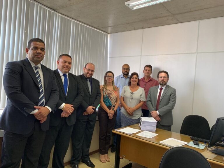 Os prefeitos e prefeita de Santa Cruz do Escalvado, Rio Doce, Barra Longa e Mariana com seus respectivos procuradores e assessores jurídicos protocolizaram na tarde