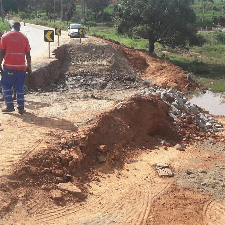 O Departamento Edificações Estradas Rodagem MG através da empresa Sisam iniciou hoje os trabalhos de recuperação da AMG 1705 no km 6 perto das indústrias