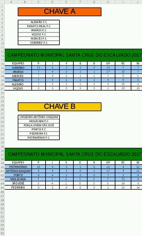 RODADA 6 DOMINGO 21/01/2018 08:30 MERCÊS F.C x IRMÃOS F.C 14:40 F.J SÃO JOSÉ x PATRIMÔNIO F.C 16:40 CRUZEIRINHO DO ANTÔNIO JOAQUIM x PORTO F.C