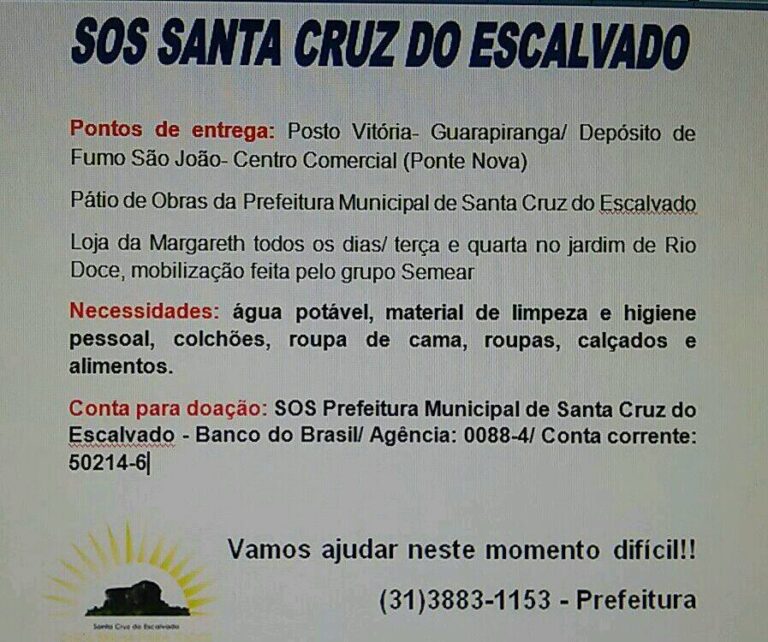 Pontos de entrega: Posto Vitória – Guarapiranga / Depósito de Fumo são João – Centro comercial ( Ponte Nova) – Pátio de Obras da Prefeitura