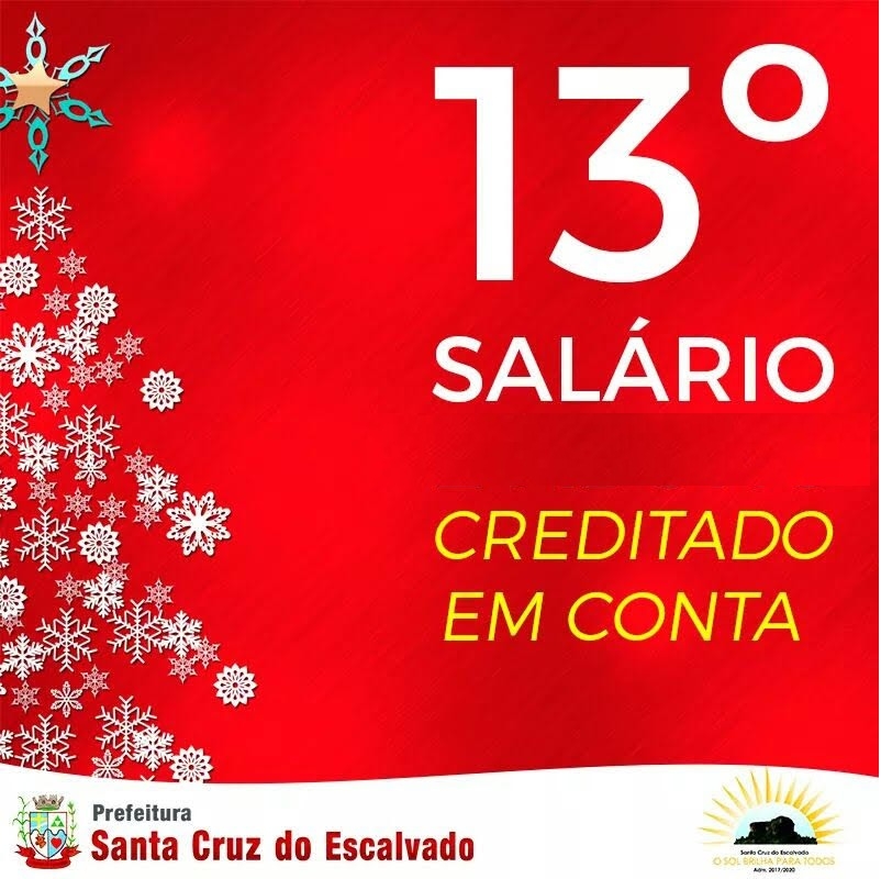 A prefeitura de Santa Cruz do Escalvado creditou nesta sexta-feira (13) , o 13º salário de forma integral aos seus servidores municipais. … Sendo que, a antecipação do 13º salário é importante também para a economia local.