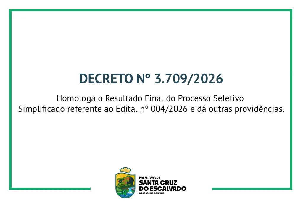 Homologa o Resultado Final do Processo Seletivo Simplificado referente ao Edital nº 004/2026 e dá outras providências.