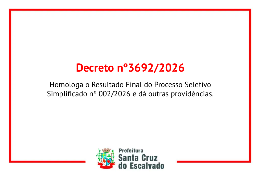 Homologa o Resultado Final do Processo Seletivo Simplificado nº 002/2026 e dá outras providências.