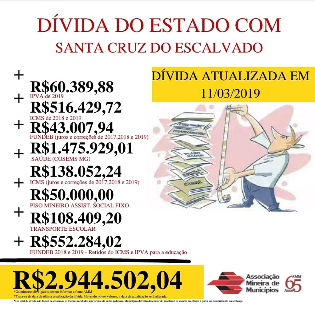 Essa é a Real dívida do Governo de Minas Gerais com o município, dinheiro este que faz falta para investimentos.