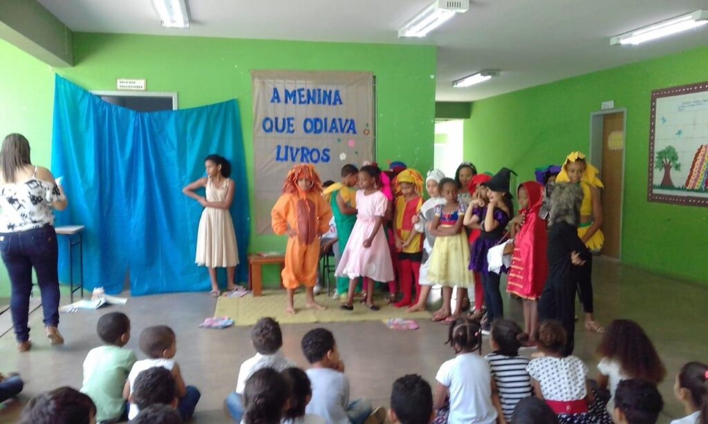 A Escola Municipal José Gomes de Souza recebeu com carinho os alunos da Escola Estadual Dr. Otávio Soares no dia 10/10/2018 para apresentação da peça teatral “A Menina que Odiava os Livros” a peça foi trabalhada com os alunos de tempo integral para o incentivo para as crianças da rede municipal de ensino e da rede estadual.