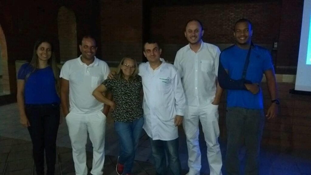 Esquerda/ Direita- Nayara Rubio (Nasf), Adão Lana (Assessor da secretaria de saúde e Enfermeiro), Maria Helena Lanna (Secretaria de Saúde), Dr. Leonardo Cotta Reis (Médico Urologista), Dr. Ronaldo da Veiga (Odontólogo) e João Vitor (Nasf).