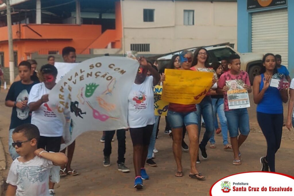 Aconteceu na manhã desta quarta-feira(19) uma passeata envolvendo alunos do 9 Ano da Escola Estadual Dr. Otávio Soares, professores, membros poder público municipal, sociedade civil e diversos profissionais saíram do CMEI e toda extensão rua Capitão Luiz Sette até a escola estadual e finalizando na Policlínica para abordar os mecanismos de prevenção contra a Dengue no Município de Santa Cruz do Escalvado, a passeata foi apresentada com o tema “Dengue”.