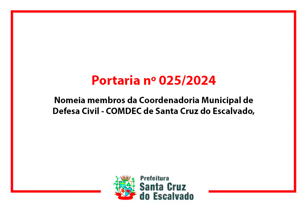 Nomeia membros da Coordenadoria Municipal de Defesa Civil – COMDEC de Santa Cruz do Escalvado