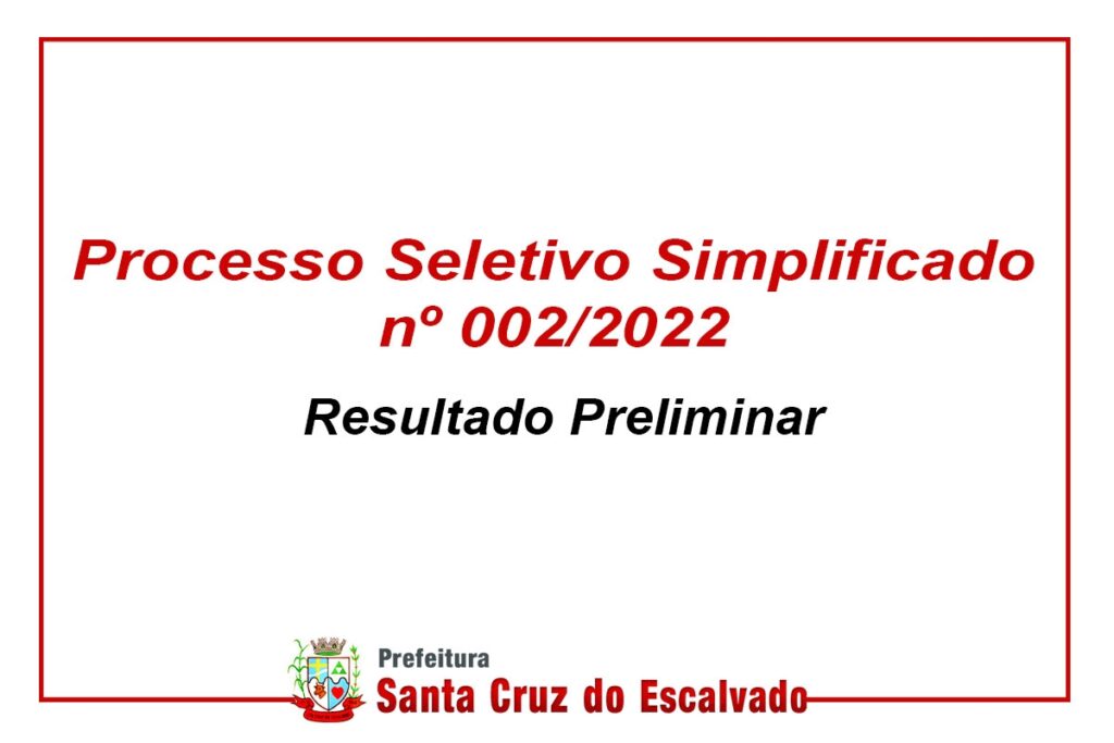 Resultado Preliminar – Processo Seletivo Simplificado nº 002/2022
